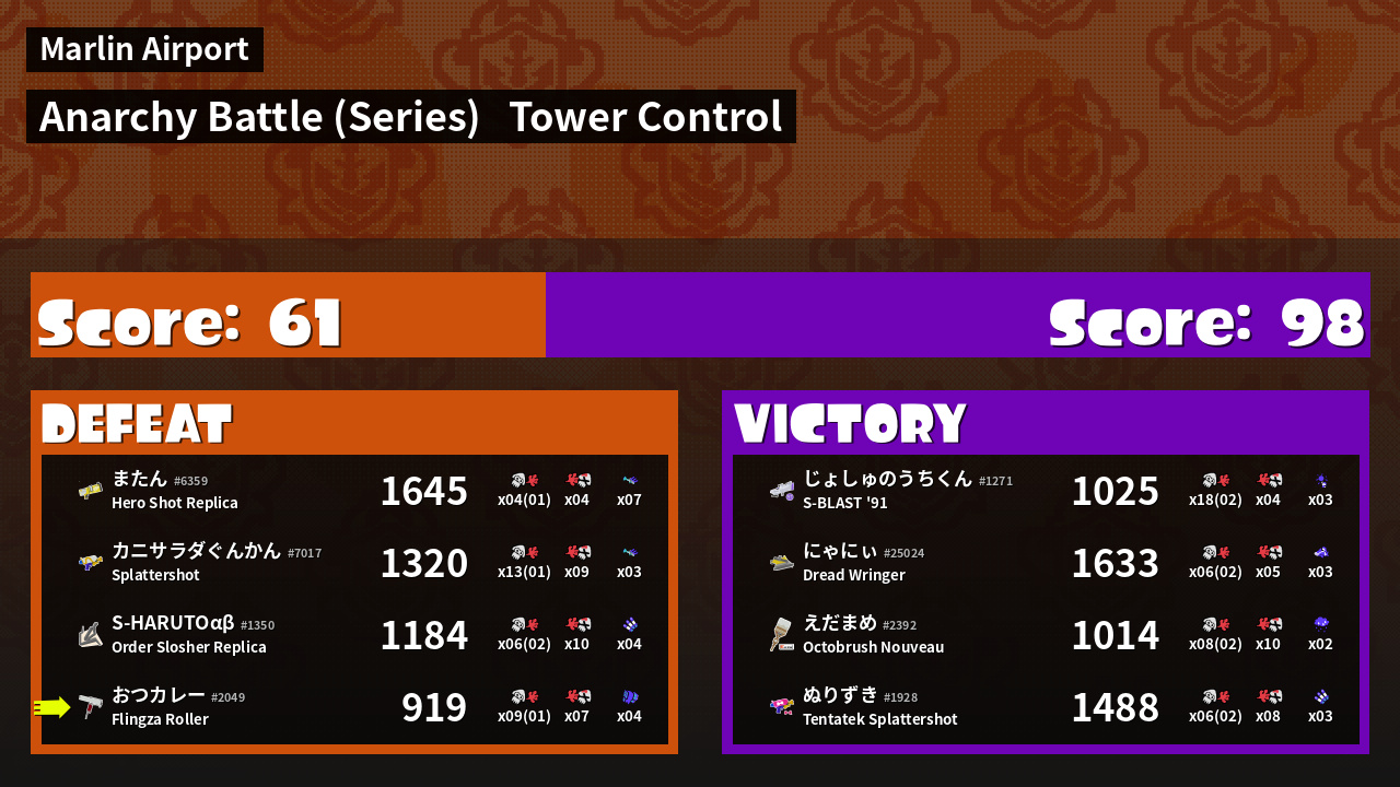 | Mode | Tower Control - Anarchy Battle (Series) |