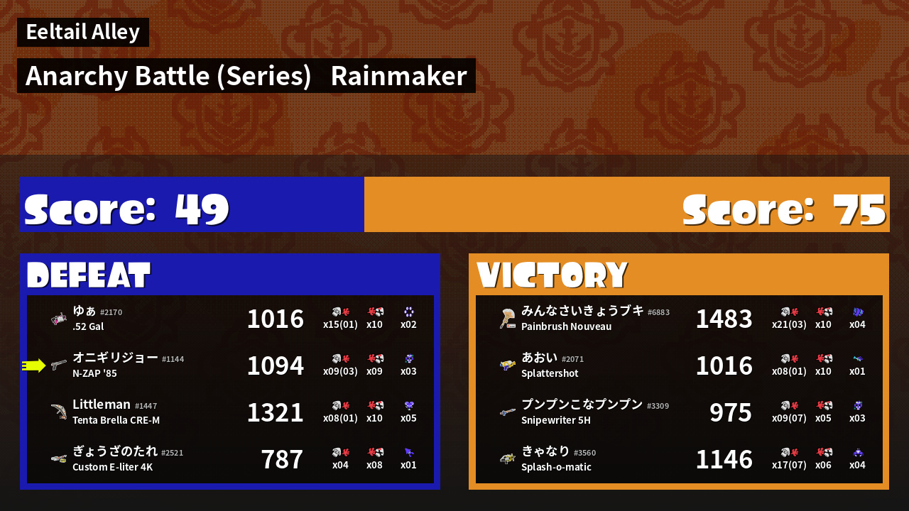 Results of まこりーた's Battle