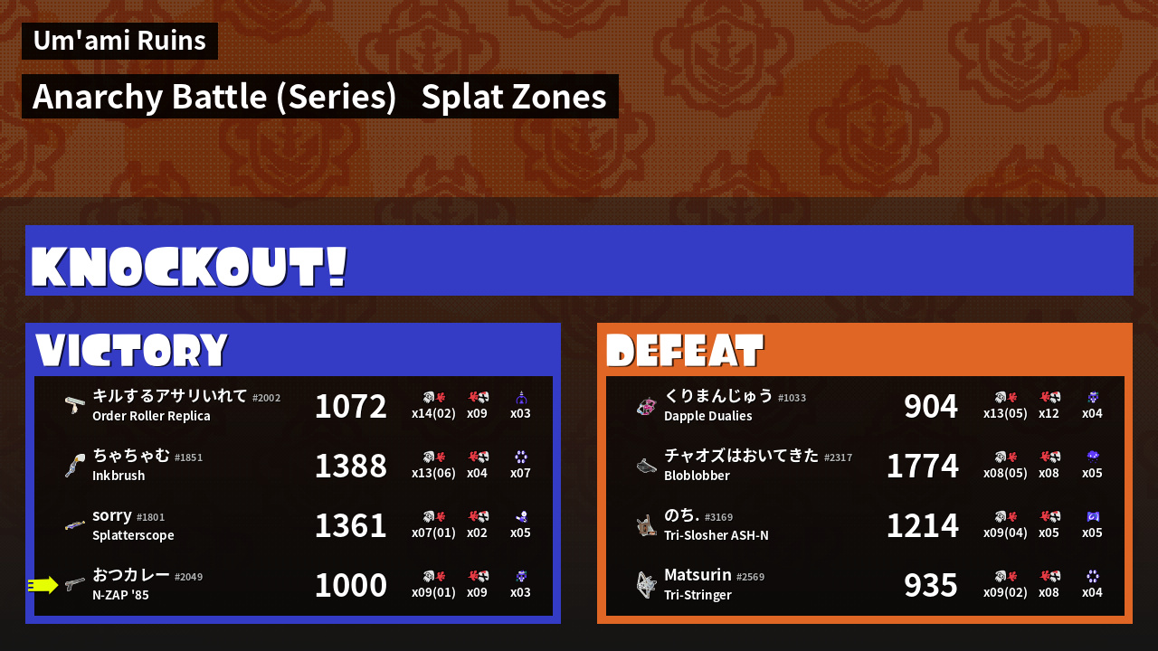 | Mode | Splat Zones - Anarchy Battle (Series) |