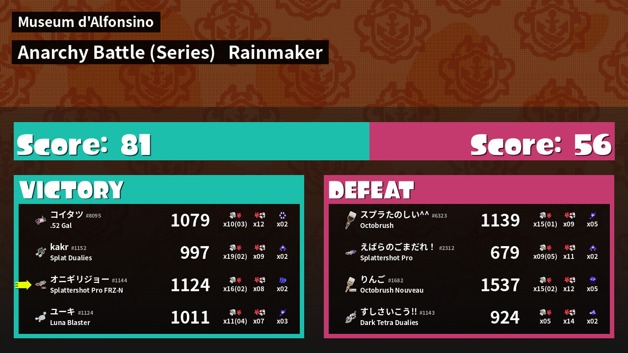 Results of まこりーた's Battle