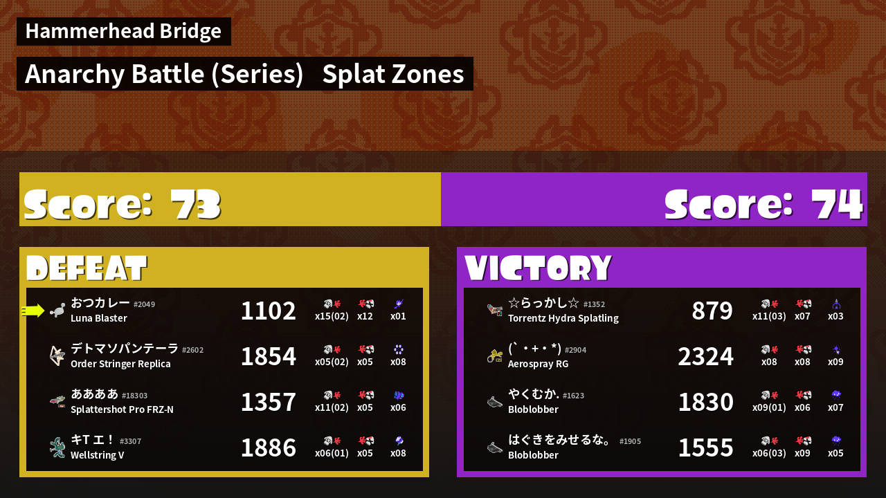 | Mode | Splat Zones - Anarchy Battle (Series) |