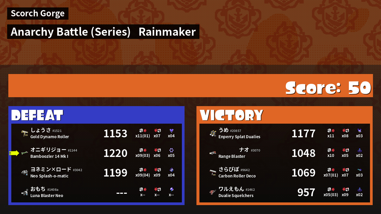 | Mode | Rainmaker - Anarchy Battle (Series) |