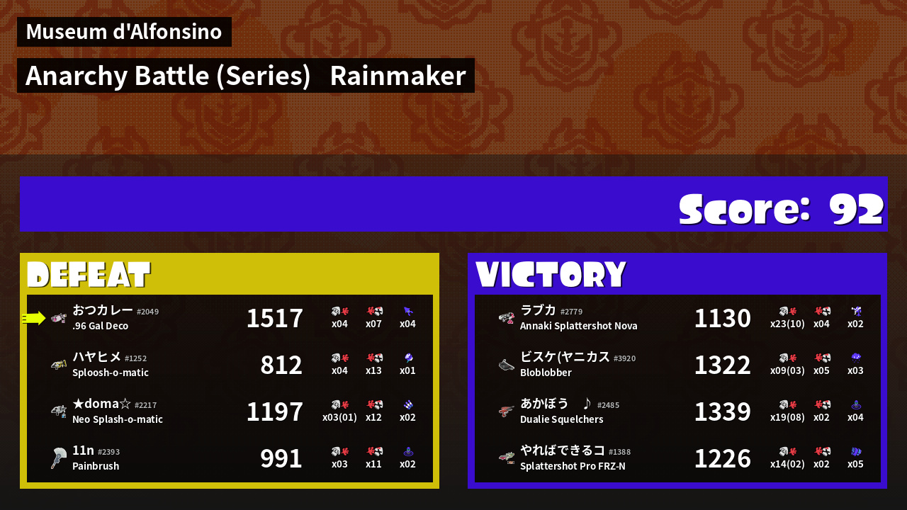 | Weapon | .96 Gal Deco ( Splash Wall / Kraken Royale) |