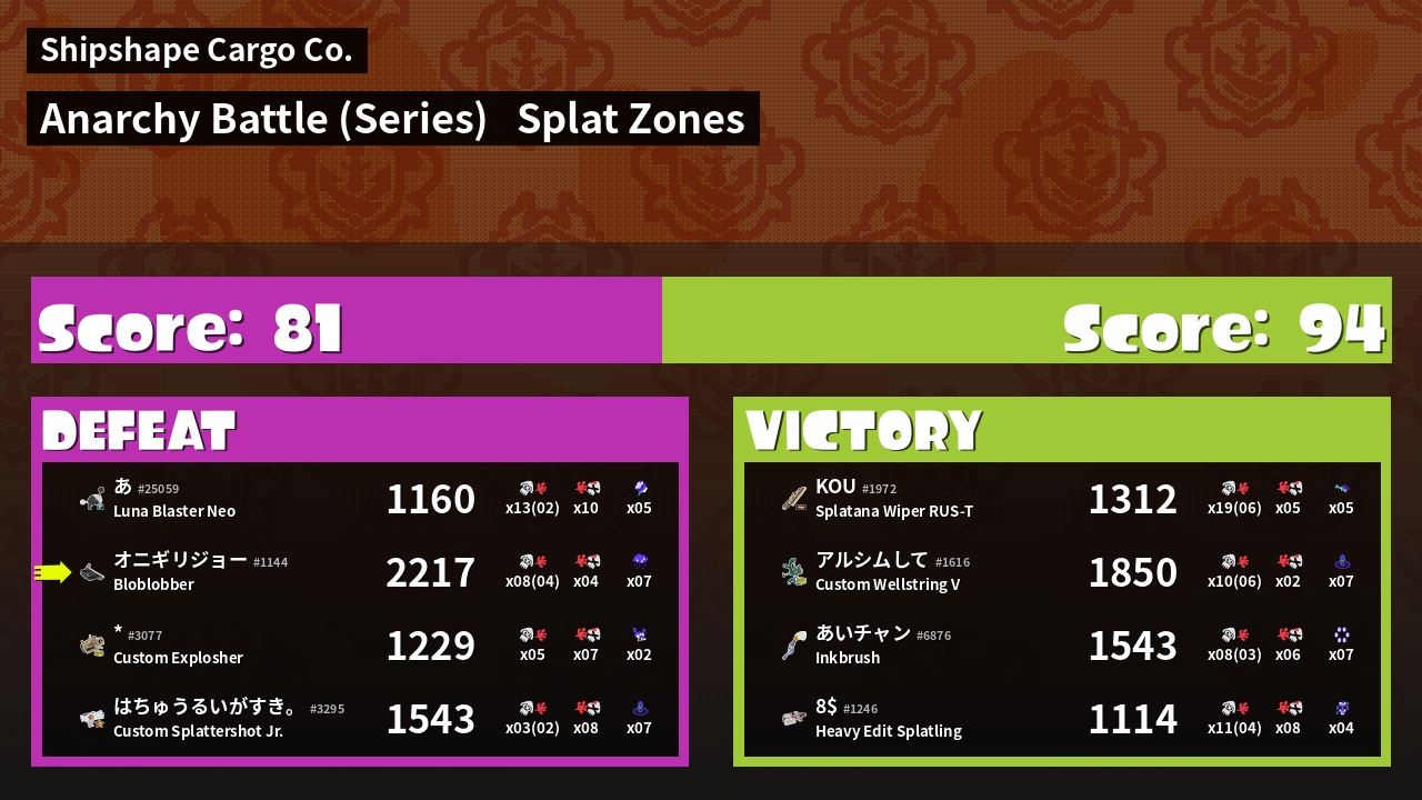 Name | Weapon | Inked | ![]() |