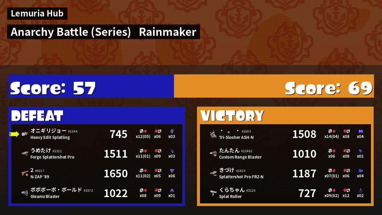 Results of まこりーた's Battle