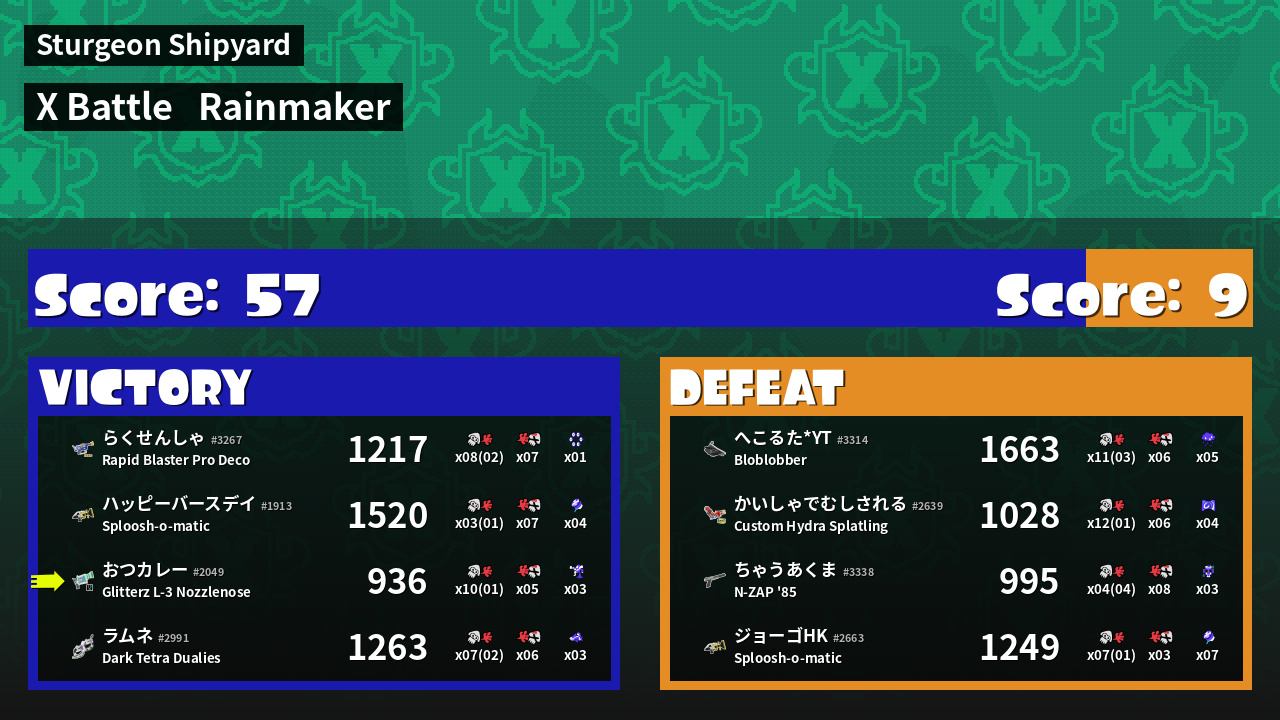 | Weapon | Glitterz L-3 Nozzlenose ( Splat Bomb / Inkjet) |
