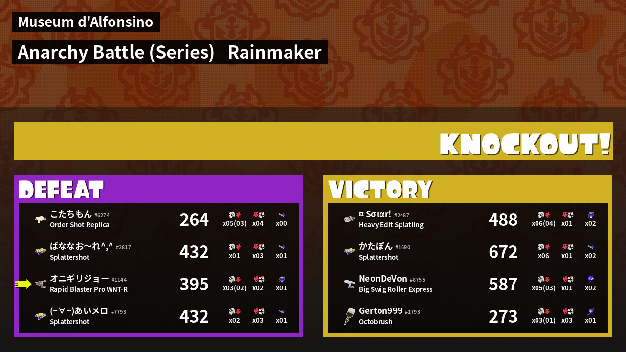 | Mode | Rainmaker - Anarchy Battle (Series) |
