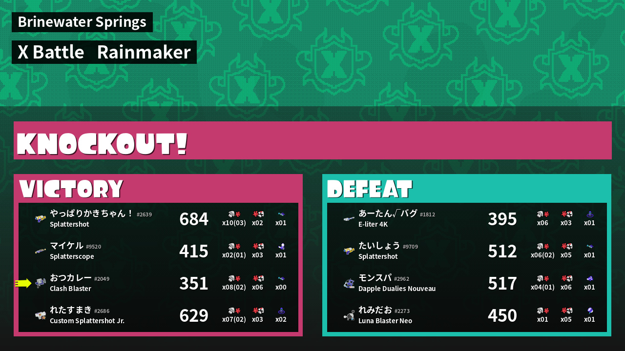 | Medals | First Splat! #2 Overall Splatter #2 Popular Target |