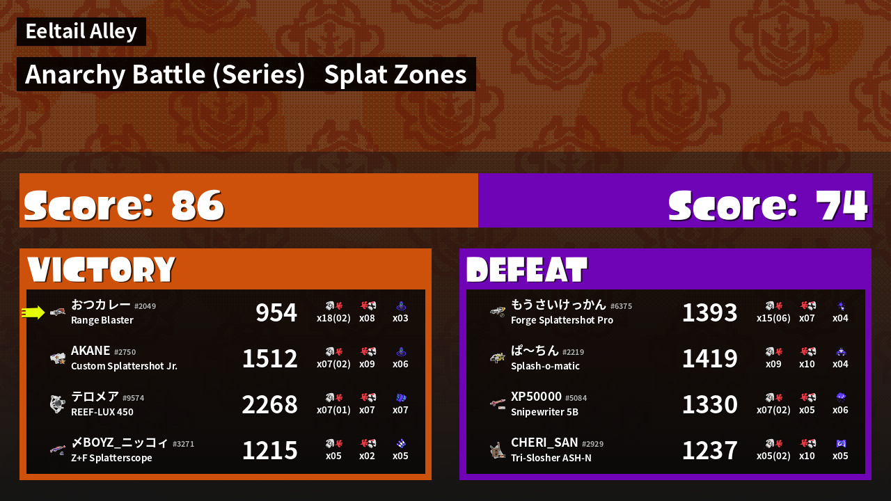 | Mode | Splat Zones - Anarchy Battle (Series) |