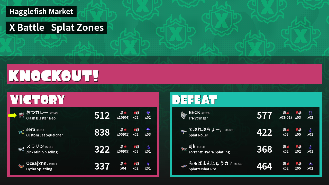 | Mode | Splat Zones - X Battle |