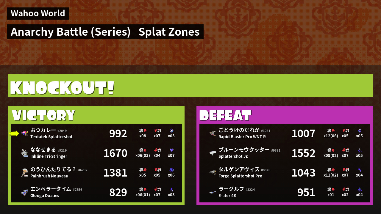| Mode | Splat Zones - Anarchy Battle (Series) |