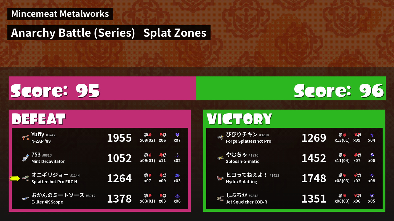 Results of まこりーた's Battle