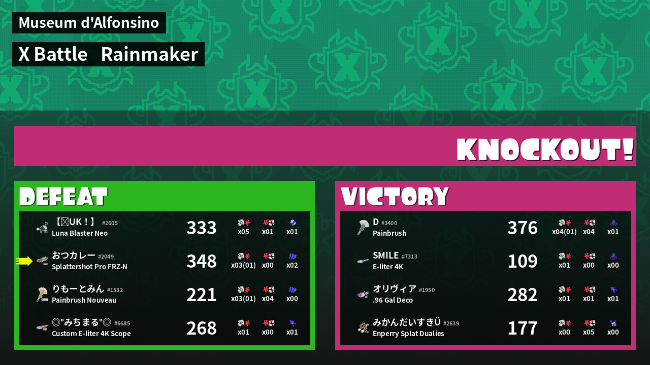 | Medals | #1 Turf Inker #1 Super Jump Spot #1 Splat Assister |