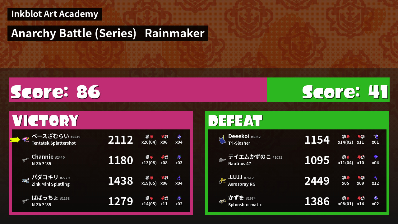 Specials | 4 (Triple Inkstrike) | ||