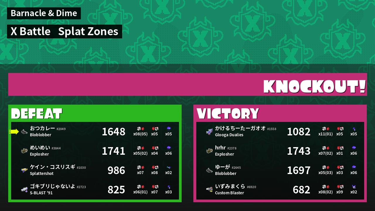 | Mode | Splat Zones - X Battle |