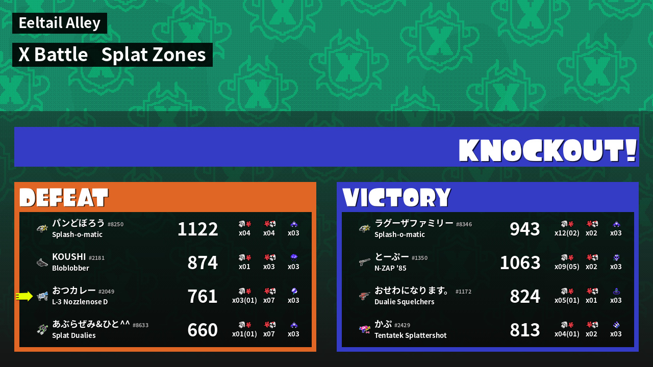 | Mode | Splat Zones - X Battle |