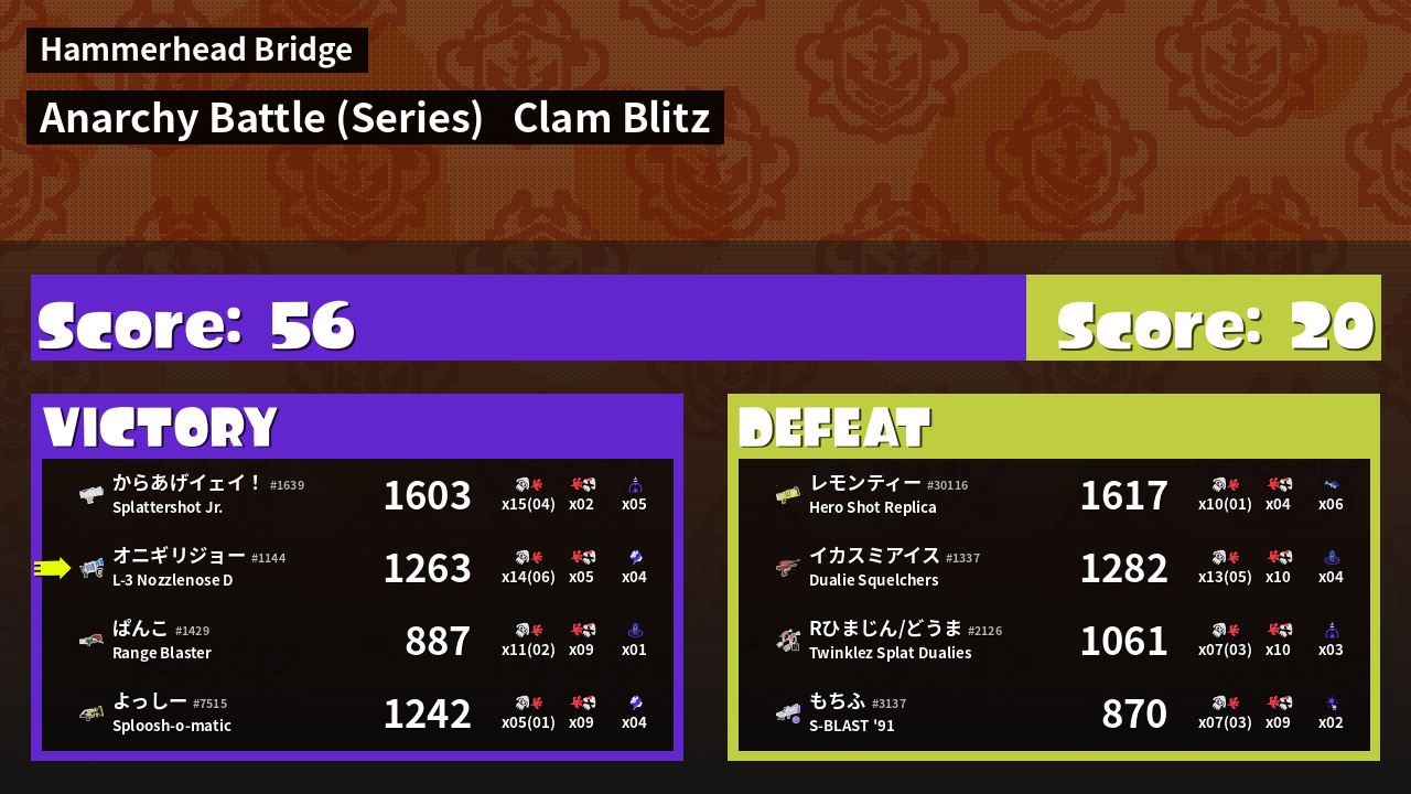 Results of まこりーた's Battle