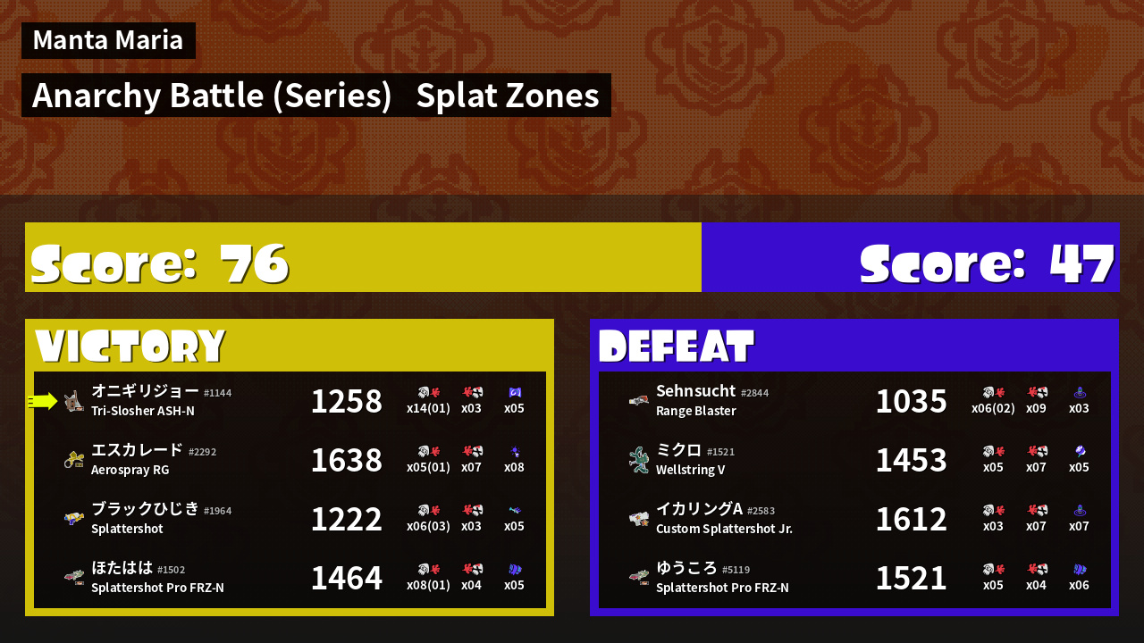 Results of まこりーた's Battle