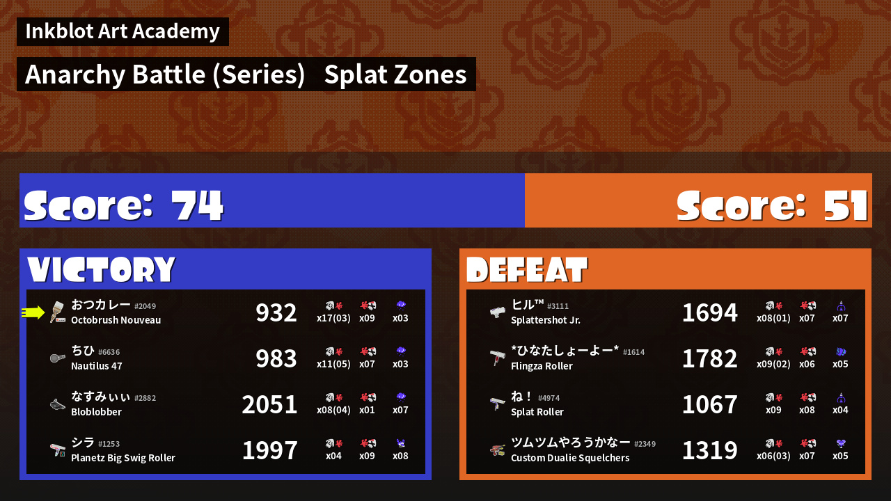 | Mode | Splat Zones - Anarchy Battle (Series) |