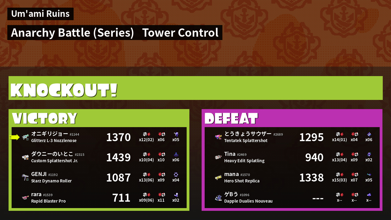 Results of まこりーた's Battle