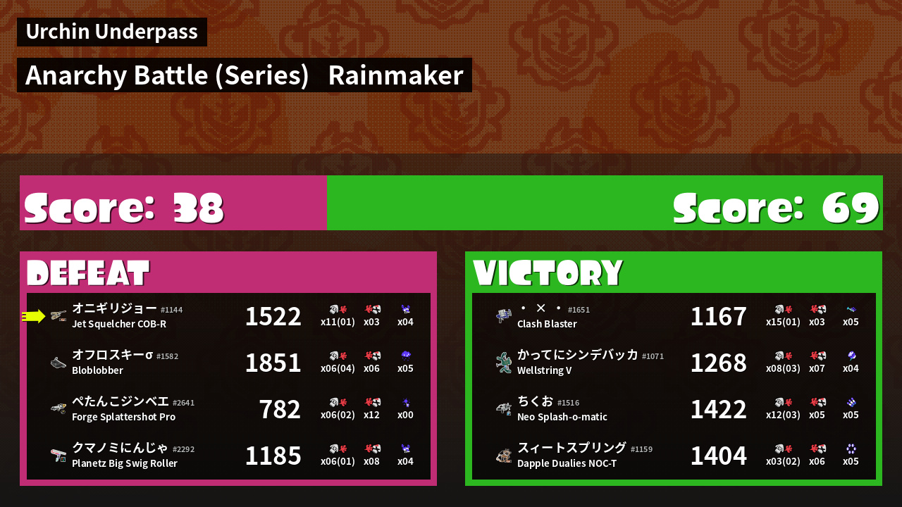 Results of まこりーた's Battle