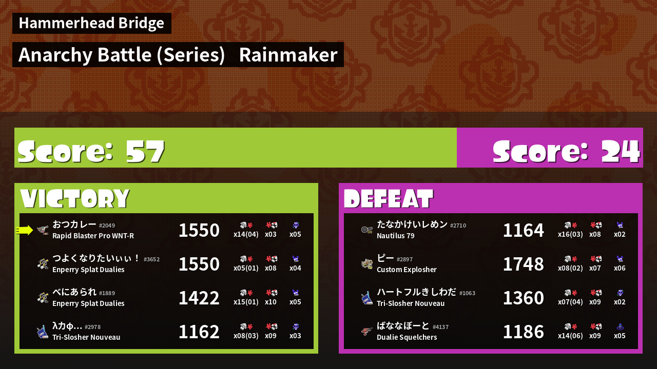| Mode | Rainmaker - Anarchy Battle (Series) |