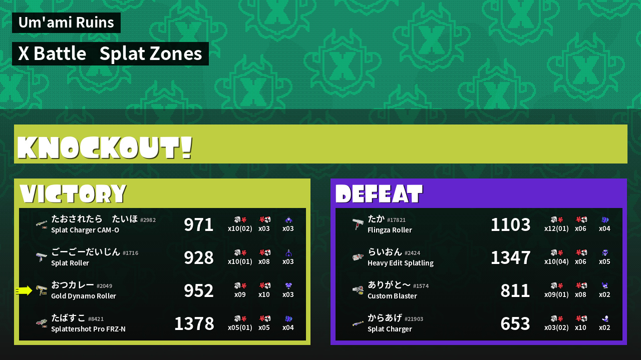 | Mode | Splat Zones - X Battle |