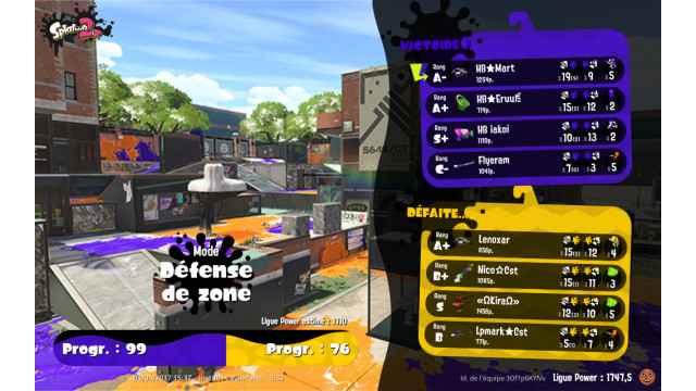 | Mode | Splat Zones - League Battle (Quad) |