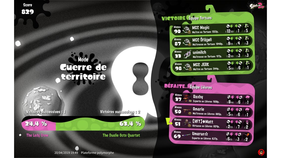 | Splatfest Title | Lièvres Champion 467 → Lièvres Champion 487 | |||||||||||||||||||||||||||||||||||||