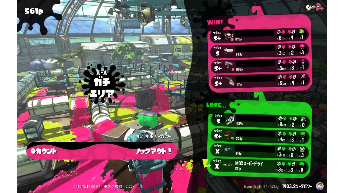 | Mode | Splat Zones - League Battle (Quad) | ||||||||||||||||||||||||||||||||||