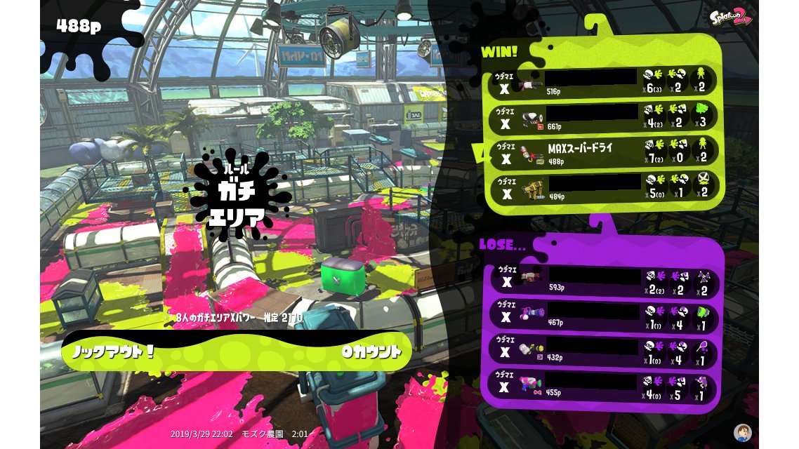 |  Custom Hydra Splatling | ★43 | X | 488 | 7 (2) / 2 | 5 / 0 | 99.99 100.00% | ||