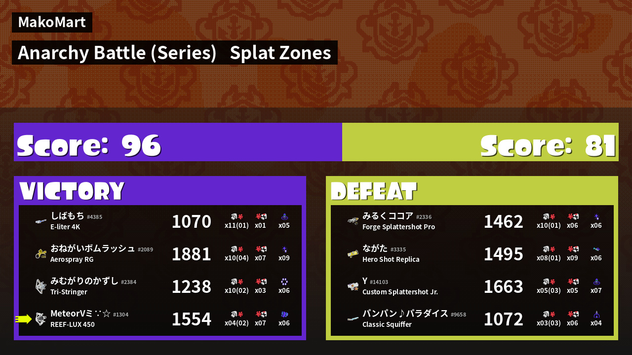 | Mode | Splat Zones - Anarchy Battle (Series) | ||