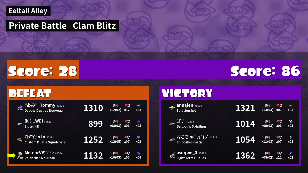 | Mode | Clam Blitz - Private Battle | ||