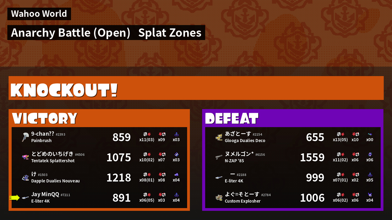 | Mode | Splat Zones - Anarchy Battle (Open) | ||