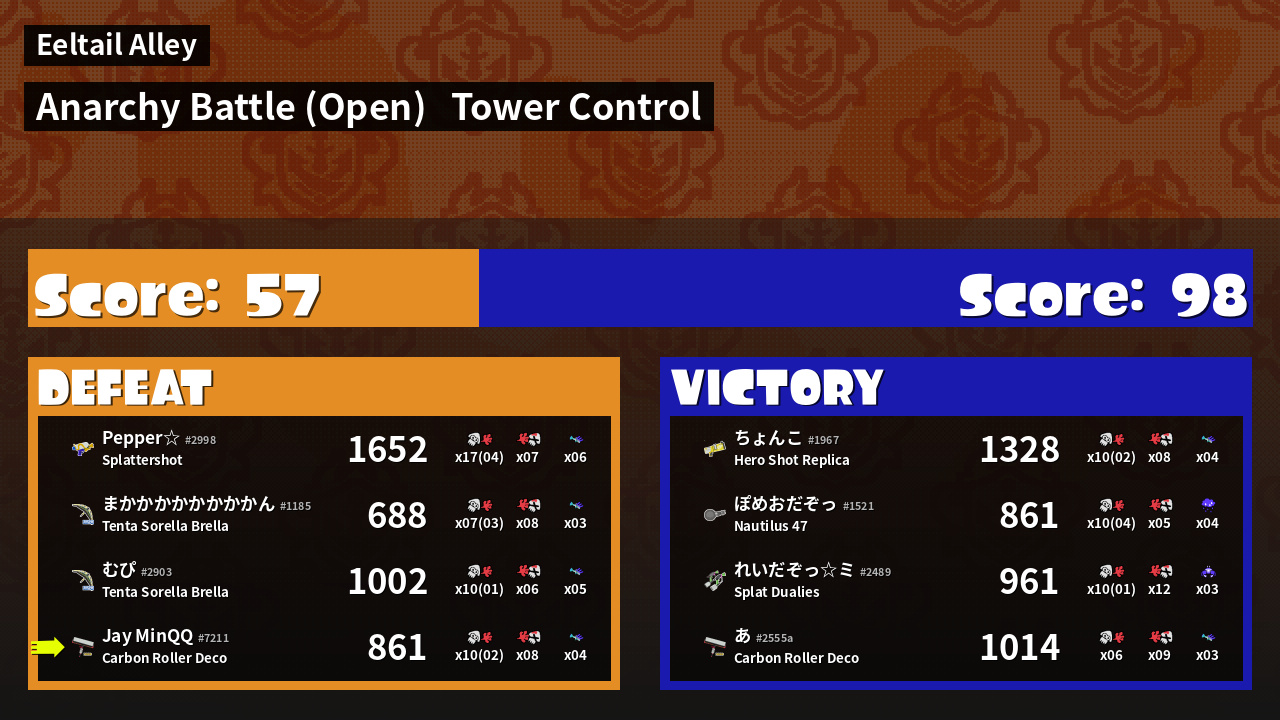 | Mode | Tower Control - Anarchy Battle (Open) | ||