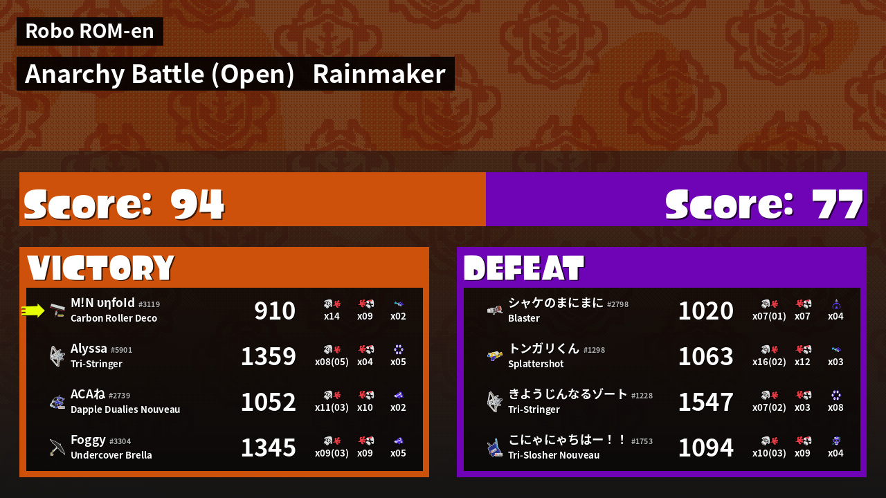 | Mode | Rainmaker - Anarchy Battle (Open) | ||