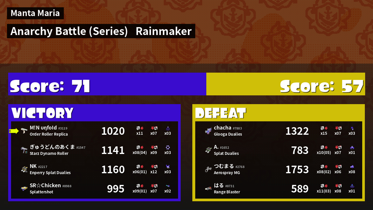 | Mode | Rainmaker - Anarchy Battle (Series) | ||