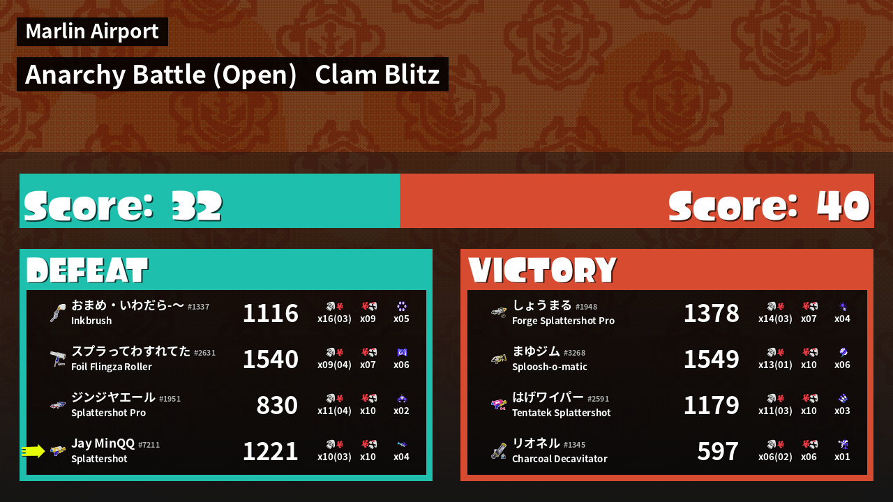 | Mode | Clam Blitz - Anarchy Battle (Open) | ||