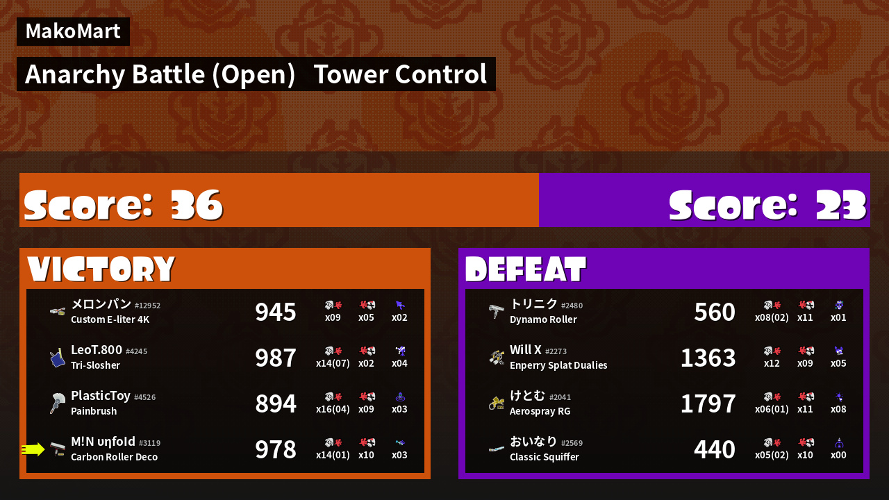 | Mode | Tower Control - Anarchy Battle (Open) | ||
