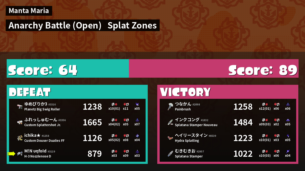 | Mode | Splat Zones - Anarchy Battle (Open) | ||
