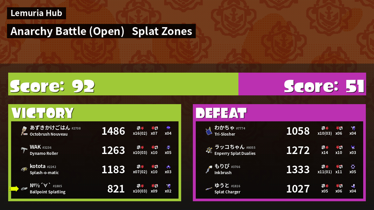 | Mode | Splat Zones - Anarchy Battle (Open) | ||