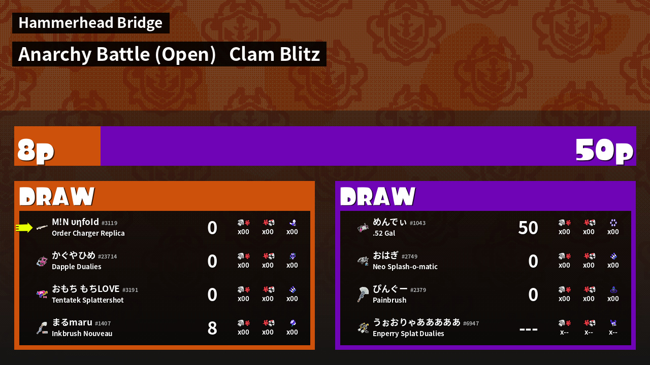 | Mode | Clam Blitz - Anarchy Battle (Open) | ||