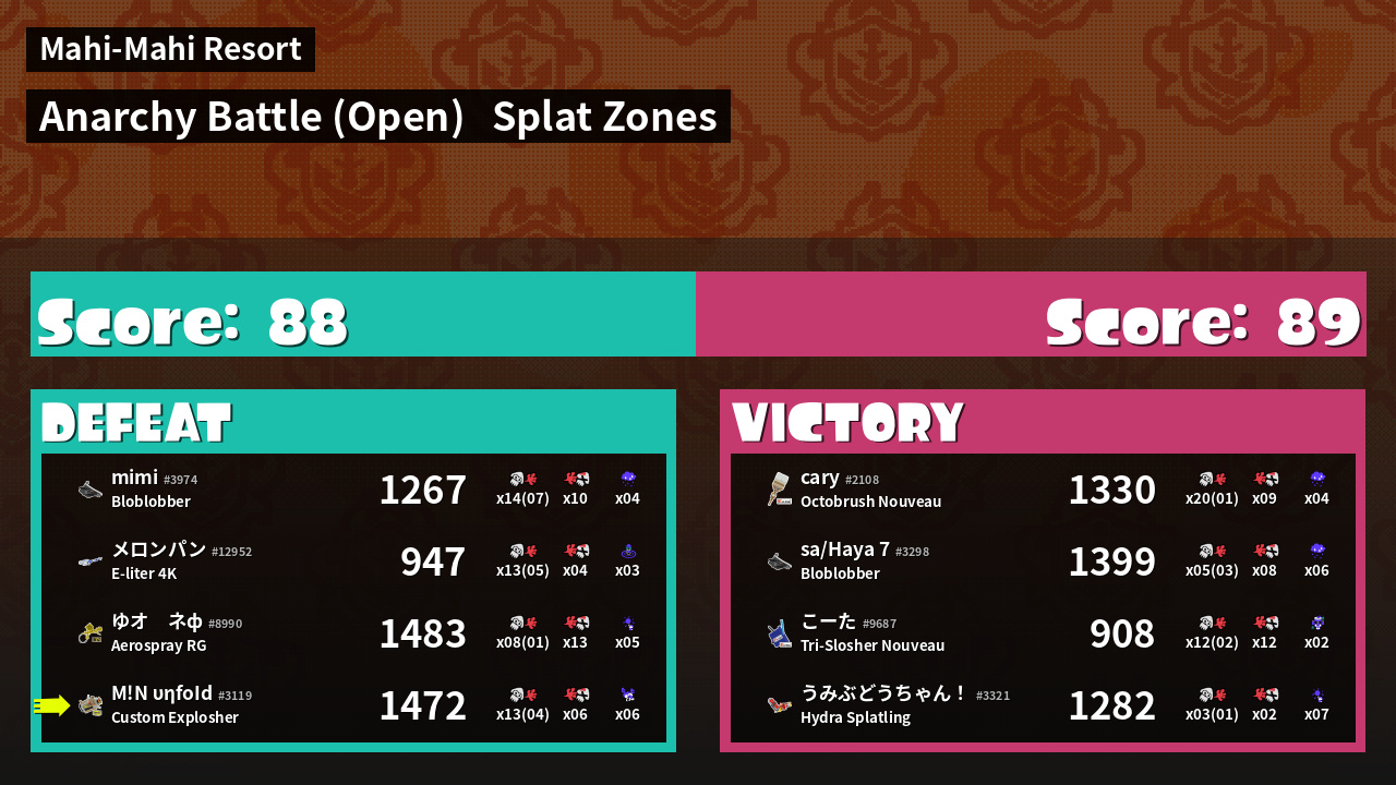 | Mode | Splat Zones - Anarchy Battle (Open) | ||