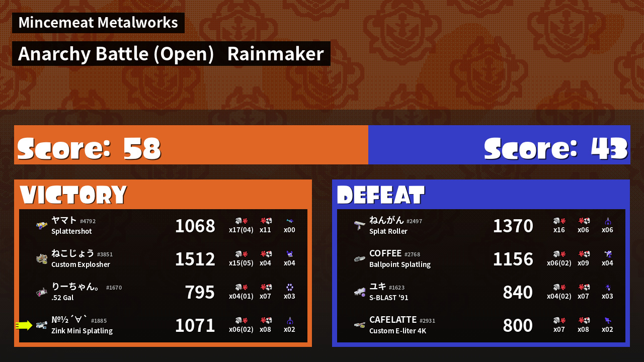 | Mode | Rainmaker - Anarchy Battle (Open) | ||