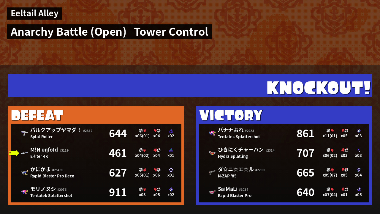 | Mode | Tower Control - Anarchy Battle (Open) | ||