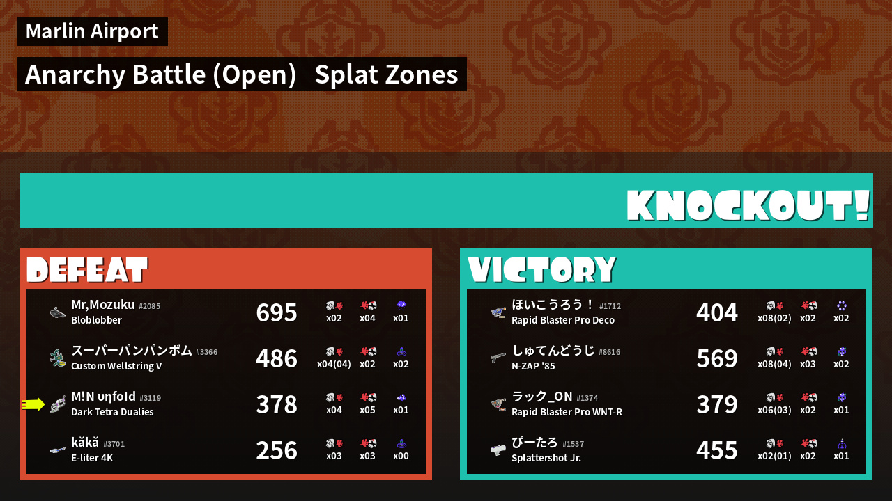| Mode | Splat Zones - Anarchy Battle (Open) | ||