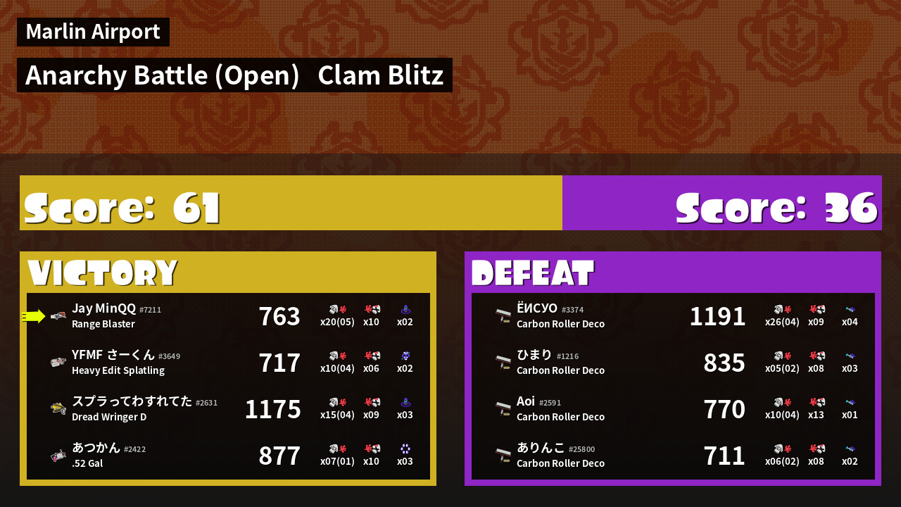 | Mode | Clam Blitz - Anarchy Battle (Open) | ||