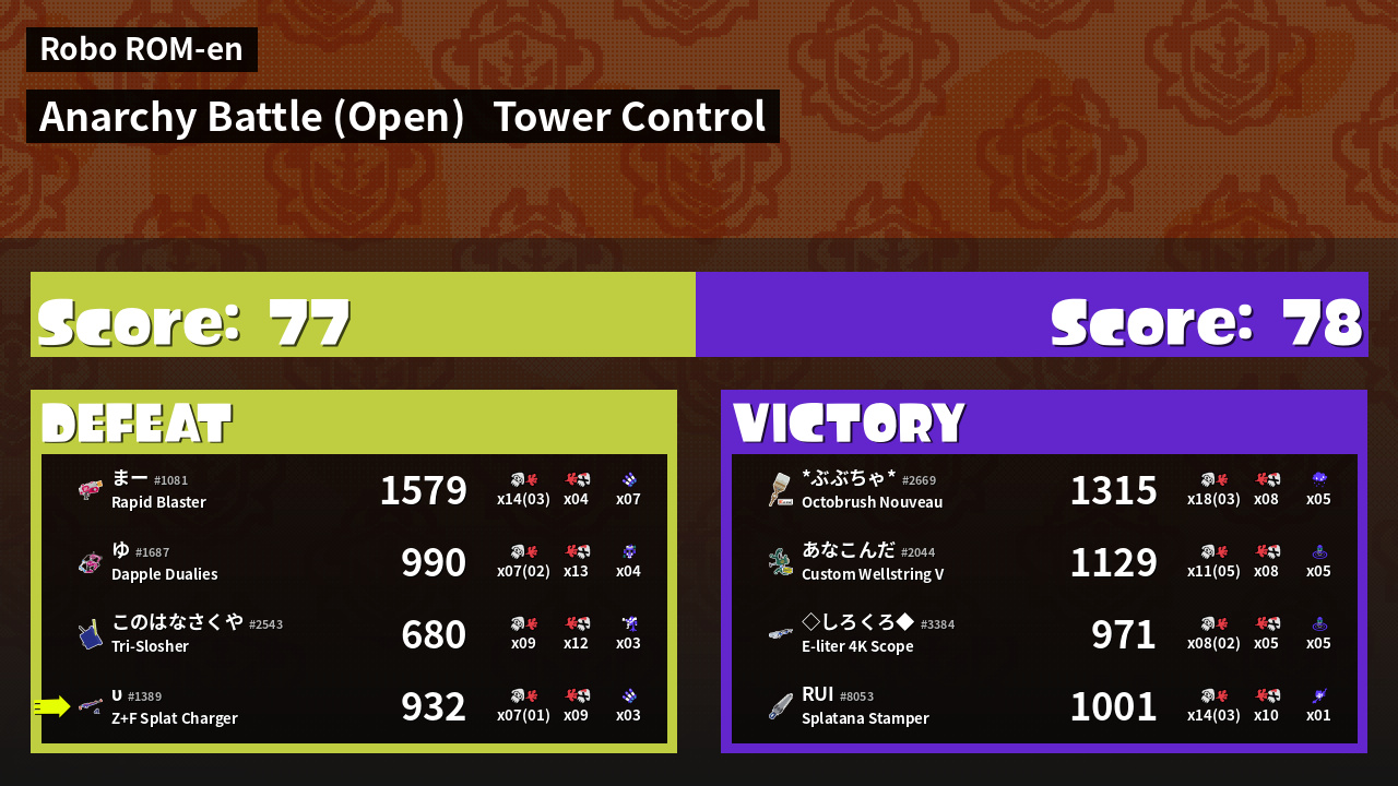 | Mode | Tower Control - Anarchy Battle (Open) | ||