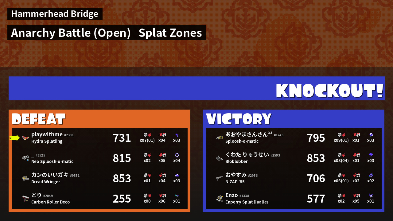 | Mode | Splat Zones - Anarchy Battle (Open) | ||