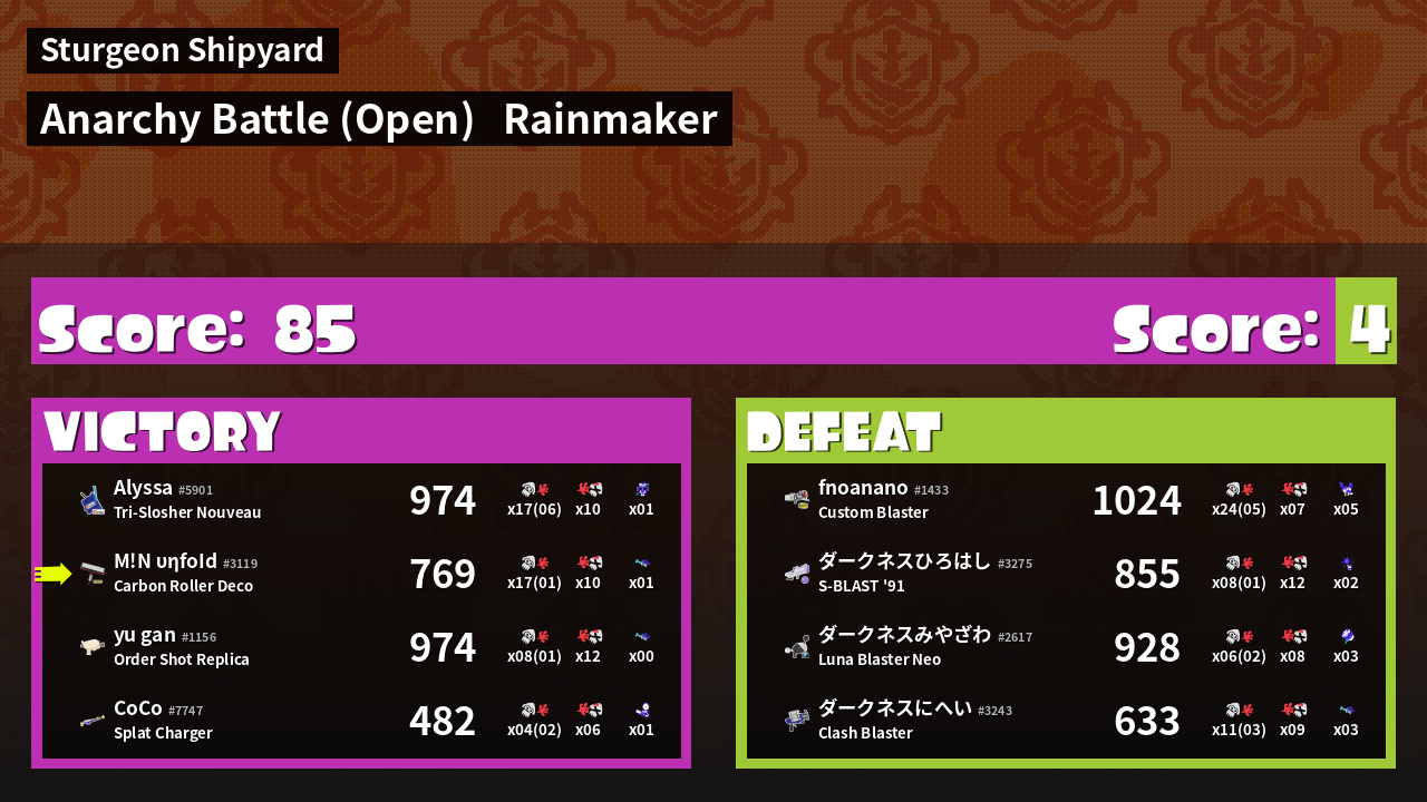 | Mode | Rainmaker - Anarchy Battle (Open) | ||